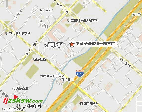 中国民航管理干部学院地址:北京市朝阳区花家地东路3号;联系电话:总机010-58250000。乘车路线:(1)乘坐404、416、420、445、701、707、852、983、运通101、运通104、运通107到望京医院下车;(2)乘坐地铁到东直门站,换乘404、614到望京医院下车;(3)乘坐地铁到望京西站下车,换乘445路车到望京医院下车。