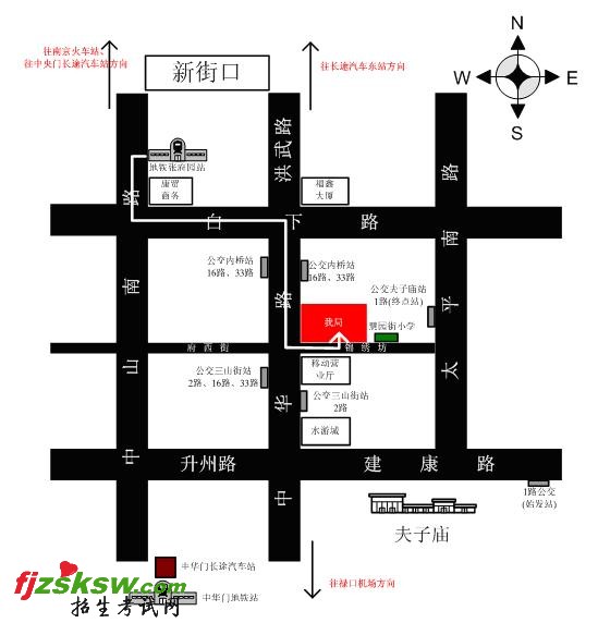 3、温馨提示:我局靠近南京市中心新街口商圈和夫子庙景区,周围高中低档宾馆、旅社和连锁酒店众多。外地考生在宁期间注意饮食卫生和交通安全。