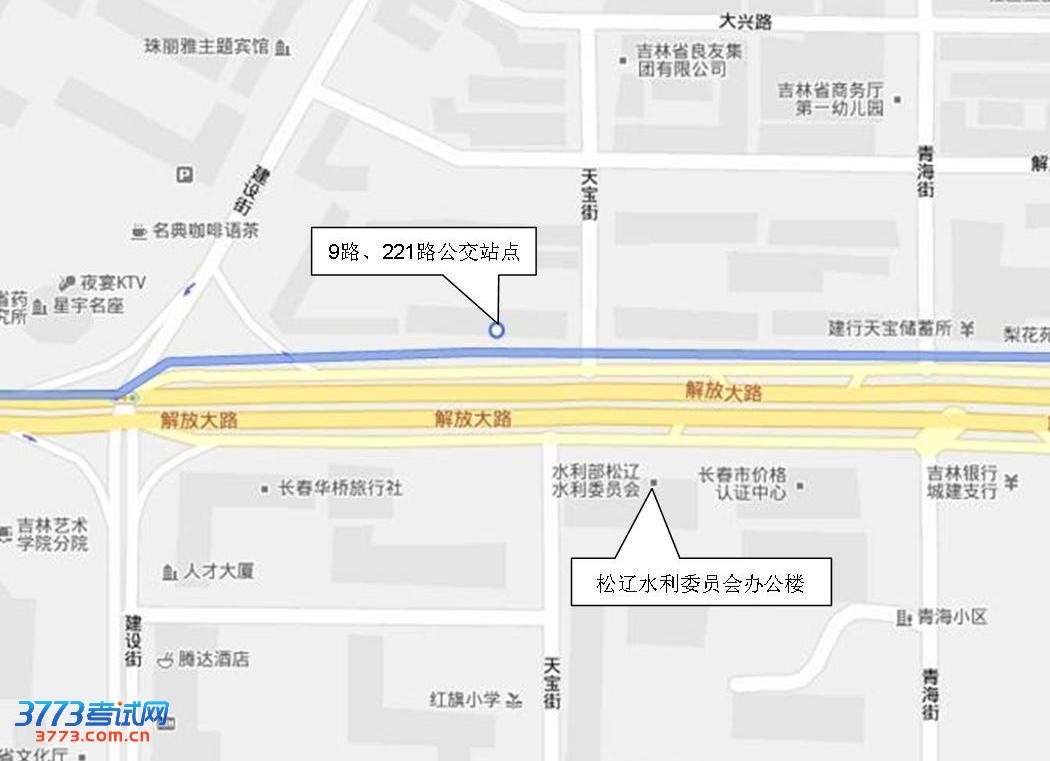 由长春龙嘉机场出发,乘坐机场大巴至长春市区终点站下车,乘坐9路公交车至建设广场下车,站点对面即为松辽水利委员会办公楼(解放大路4188号);或由长春龙嘉机场出发,乘坐火车到长春站。由长春火车站出发,乘坐221路公交车至建设广场下车,站点对面即为松辽水利委员会办公楼(解放大路4188号),具体位置见附件。