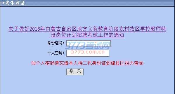 3773考试网 - 公务员考试 - 特岗教师招聘 - 内蒙古 - 正文