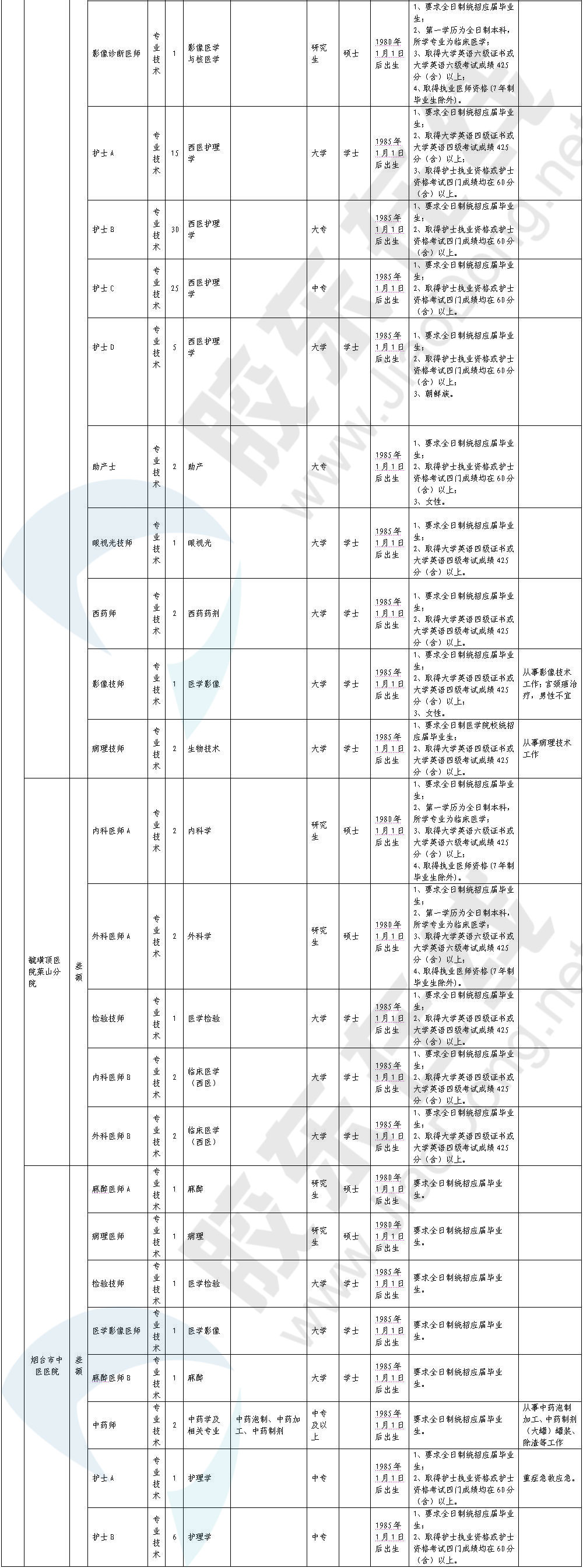 2010年山东烟台市市直事业单位招聘卫生类岗位表