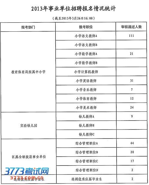山东2013年烟台莱山区事业单位招聘报名人数统计(3月27日)