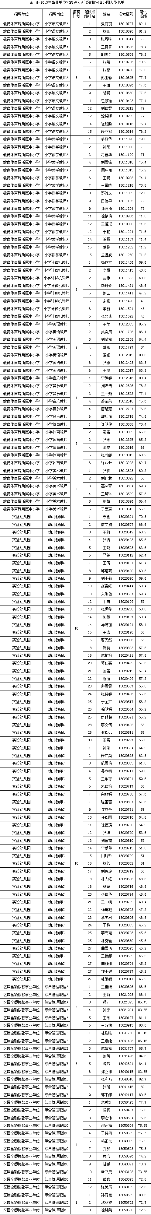 附件:2013年莱山区事业单位进入面试资格审查人员名单 中共烟台市莱山区委组织部