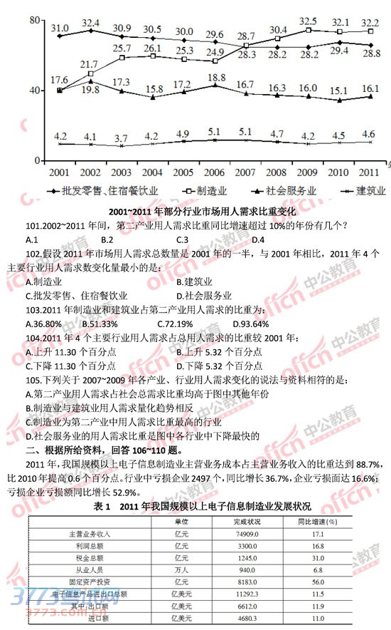山东公务员2014年考试行测真题-资料分析