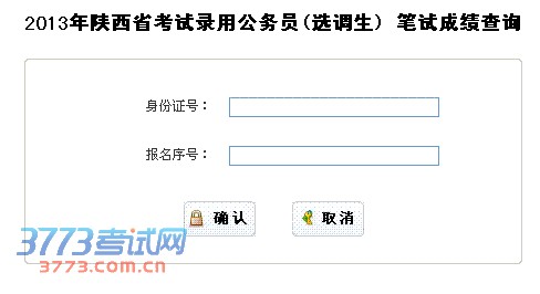 全省2013年统一考试录用公务员(选调生)和参照公务员法管理单位人员笔试成绩已与本公告同时公布。考生须本人凭身份证号码和报名序号登陆陕西省人民政府门户网(http://www.shaanxi.gov.cn/)或陕西省公务员局网(http://www.sxgwy.gov.cn/)查询。考生缺考科目标注了“Q”,成绩标注为“-1”。