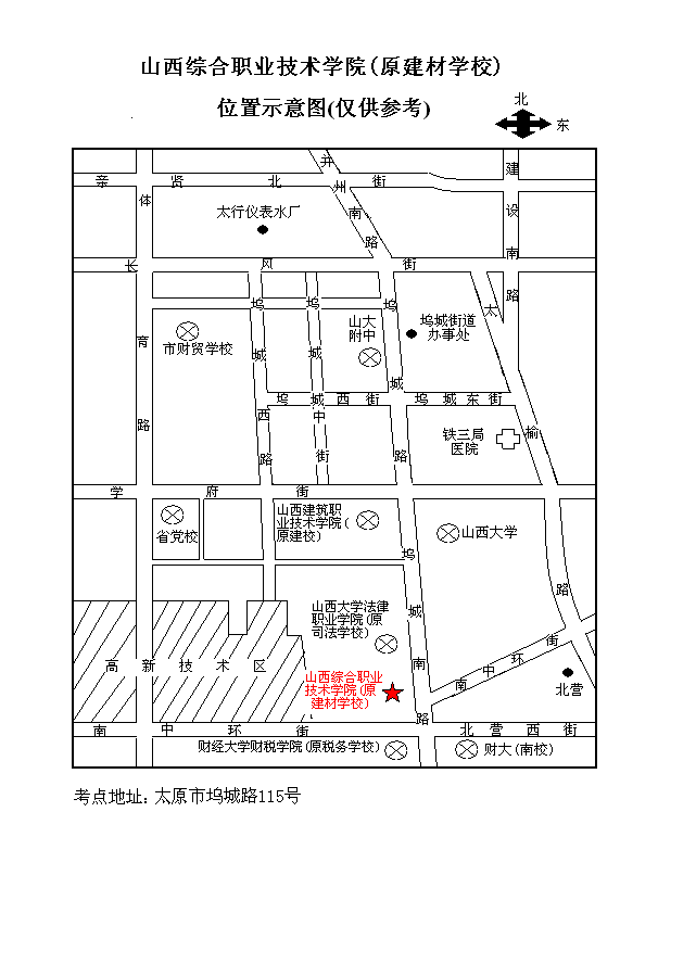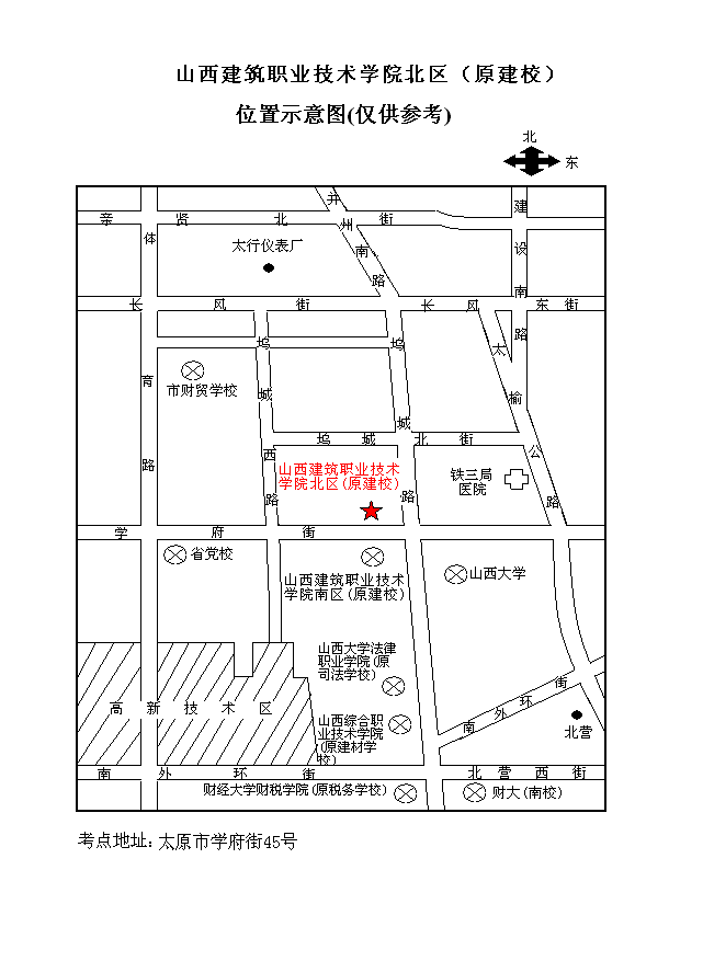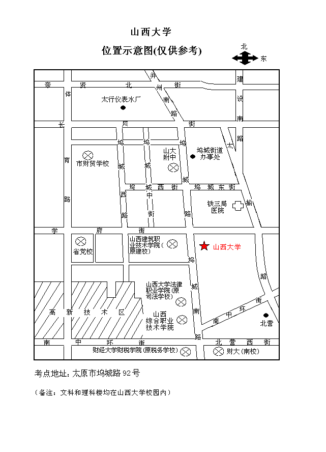 山西考区考点位置示意图