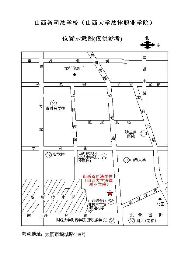 2009年山西省基层公安司法定向招录笔试考点位置示意图