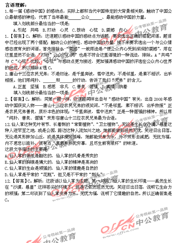 2009年山东省公务员录用考试《行测》言语理解部分真题及解析