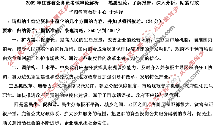 江苏省2009年公务员考试申论试题真题解析