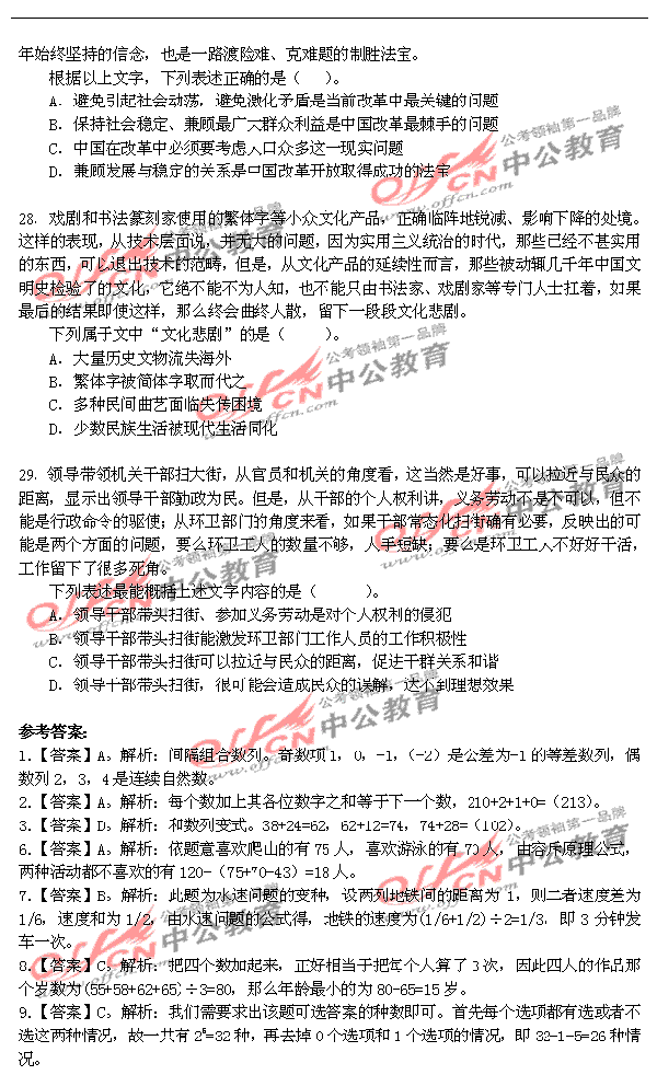 江苏省2009年公务员行测B卷真题之言语理解解析