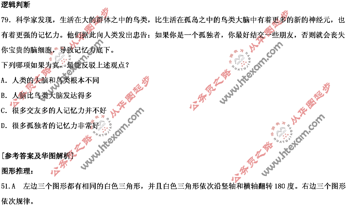 2009年下半年重庆市公务员考试笔试公共科目——行政职业能力测验考试已结束,华图教研中心提供了判断推理真题及答案解析供考生核对参考。
