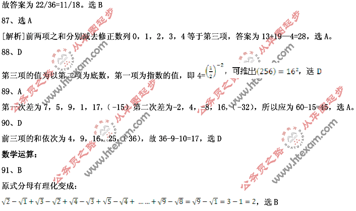 2009年海南辽宁公务员行测数量关系试题答案