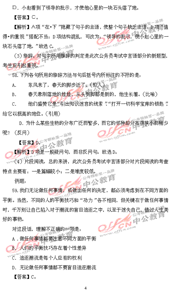 2009年河北公务员考试行测言语理解与表达真…  2009年河北公务员行测常识判断真题答案解析