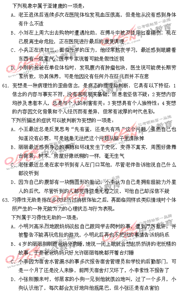 2009年河北公务员考试行测答案解析:判断推…  2009年河北公务员考试行测言语理解与表达真…