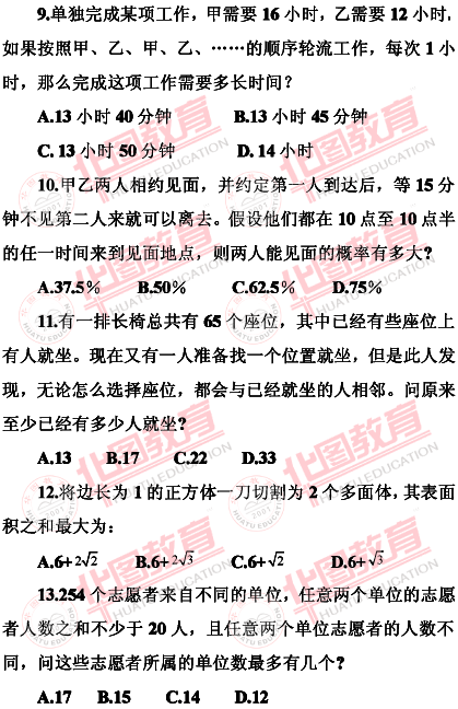 福建省2010年秋季公务员考试行测部分真