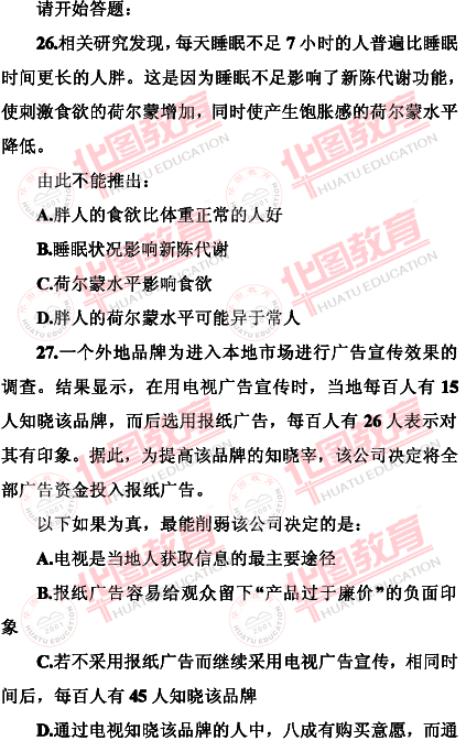 4月25日公务员考试《行政职业能力测验》考试已结束,天津、重庆、内蒙、海南、辽宁、云南、湖南、 山东、陕西、 广西、宁夏等十一地公务员考试行测真题一样,部分题顺有变动,华图教育提供了部分真题及答案解析以供查阅。