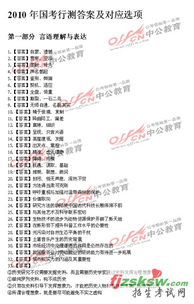 2010年国家公务员考试行测真题答案(华图)