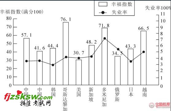 3.比中国内地失业率低的国家(地区),幸福指数均低于中国内地