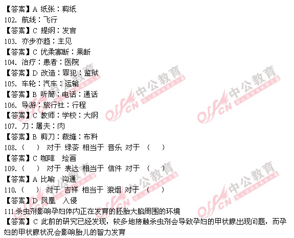 2011年国家公务员考试行测参考答案及解析(中公版)