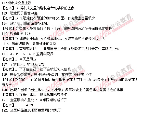 2011年国家公务员考试行测参考答案及解析(中公版)