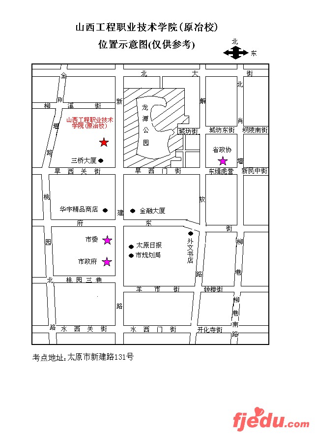 注意事项:1、考点排序不分先后; 2、请广大考生按准考证所载时间、地点和要求参加考试; 3、本考点位置示意图仅供参考,请以实际地理位置为准; 4、因太原市近期道路改造,请考生务必于考前一天熟悉考点路线合理安排赴考时间。 |