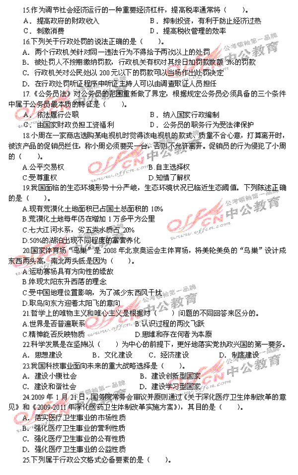 2009年国家公务员考试试题答案考后将发