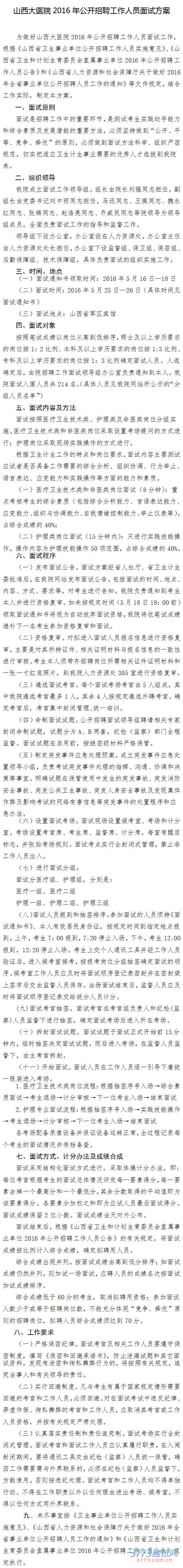 2016山西大医院招聘面试方案