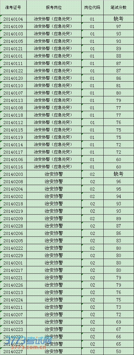 福建湖里公安分局2013招聘编外补充性笔试成绩查询