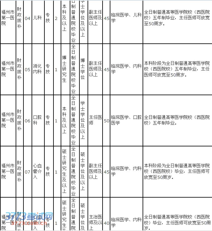 福州市第一医院2014事业单位招聘高层岗位信息表