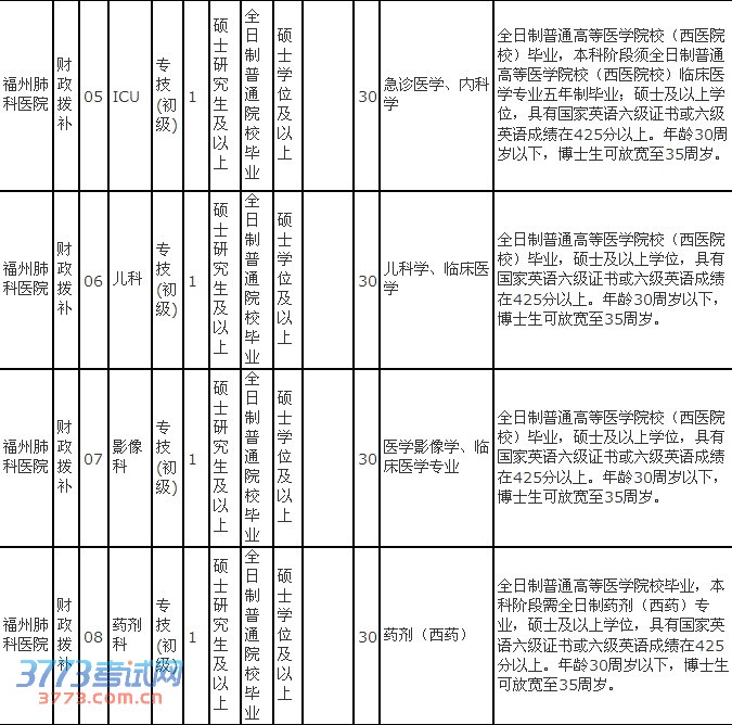 福州市肺科医院2014事业单位招聘高层岗位信息表
