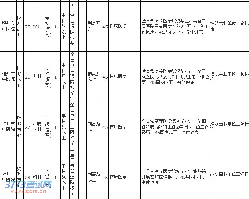福州市第一医院2014事业单位招聘高层岗位信息表