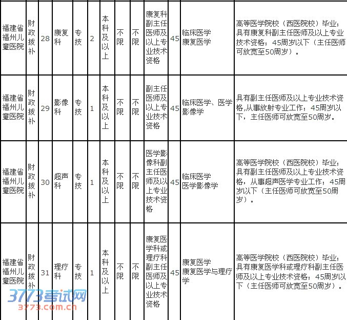 福州市儿童医院2014事业单位招聘高层岗位信息表