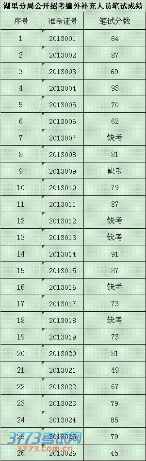 福建2013年夏季湖里公安分局招聘编外补充性笔试成绩