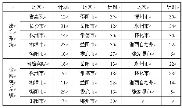 1、2008年湖南省考试录用法院工作人员计划与职位表