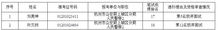 2014年浙江杭州市地税局公务员招考面试对象递补名单