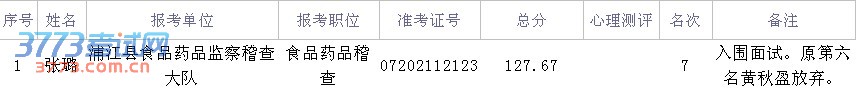 2014年浙江浦江县公务员入围面试人员名单公布(替补)