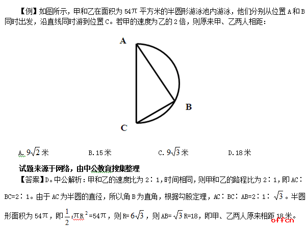在上半年的多省考试中行测数量关系部分几何问题多数考查三道,题目新颖,其本质是考查三角形性质,难度不大,侧重考查了考生的动态思维能力,同时也兼顾测验了考生的临场应变能力。