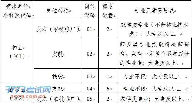 马鞍山市2014年招募高校毕业生到农村基层从事"三支一扶"工作公告