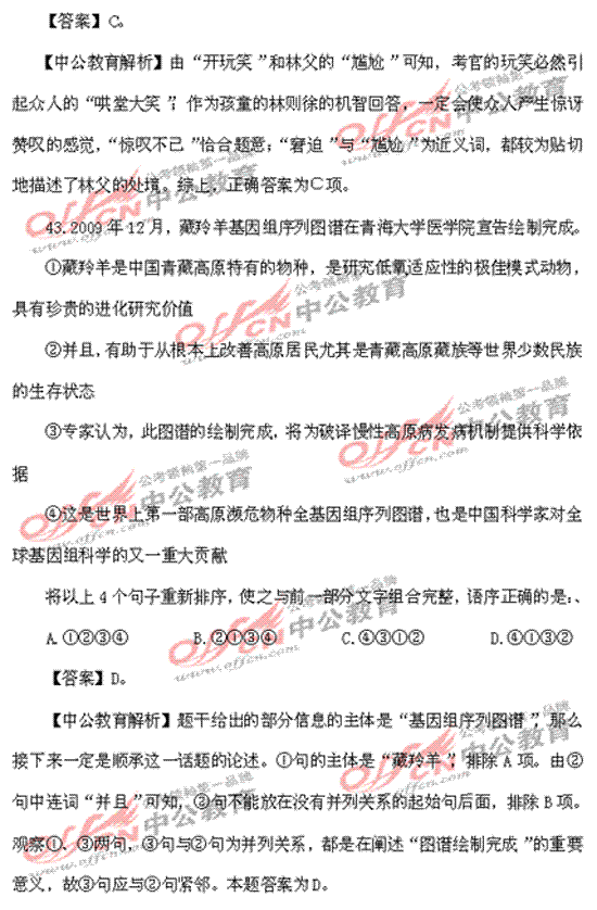 2010福建春季公务员考试行测言语理解真题答案解析