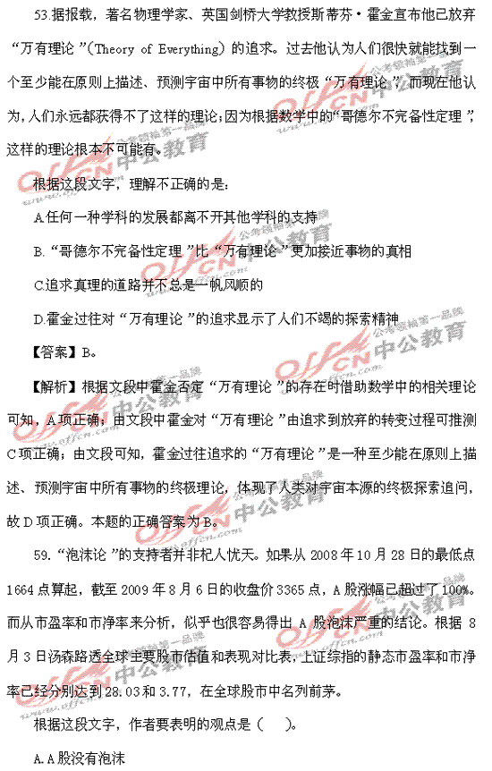 2010福建春季公务员考试行测言语理解真题答案解析