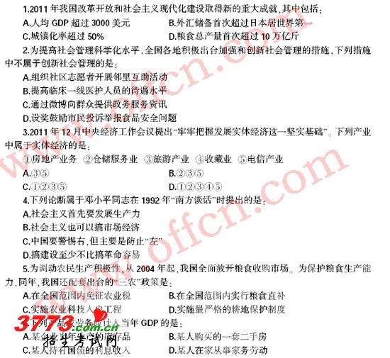 福建省漳州市2012年度春季考试录用公务