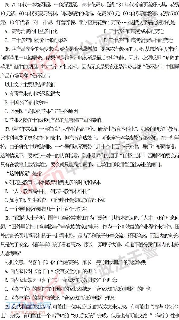 2014年吉林政法干警考试行测(本科)真题