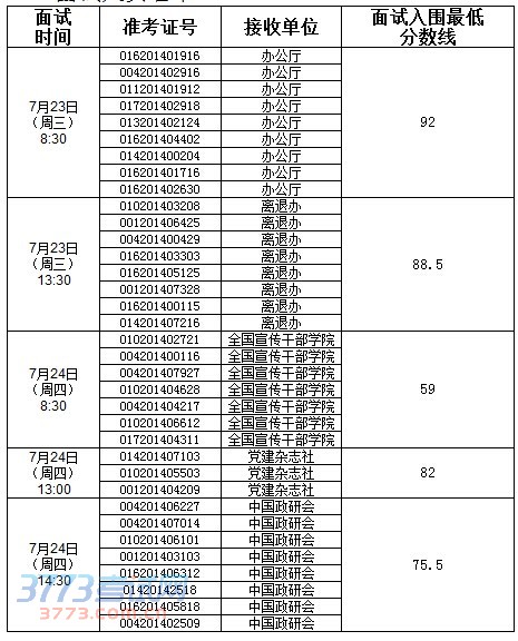 请进入面试名单的考生于7月18日17:00前电话确认是否参加面试。联系电话:010-83083020。