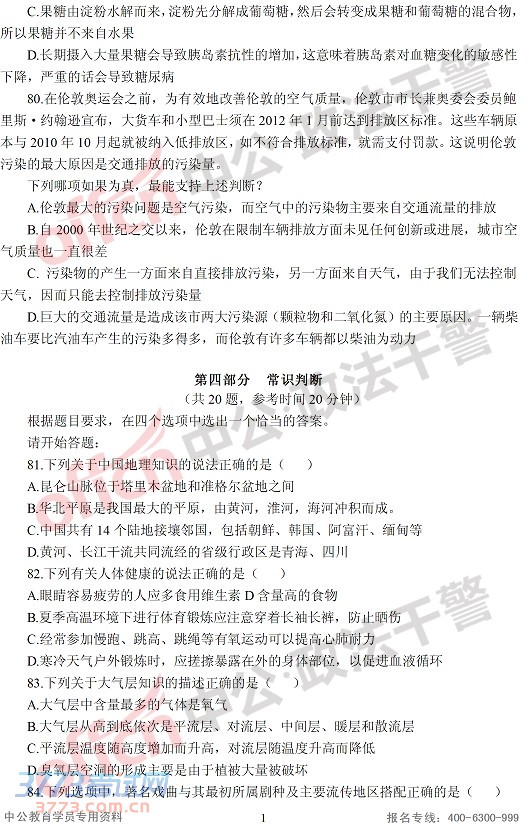2014辽宁省政法干警行测(专科)真题-判断推理