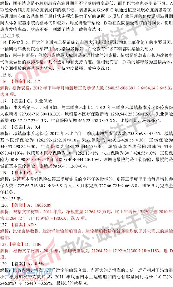 2014年陕西政法干警(专科)考试行测真题答案解析