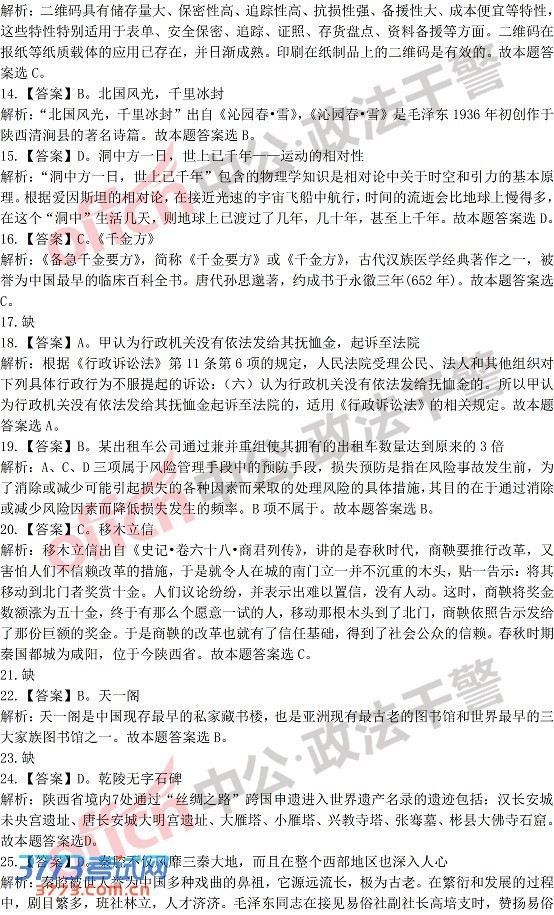 2014年陕西政法干警(专科)考试行测真题答案解析