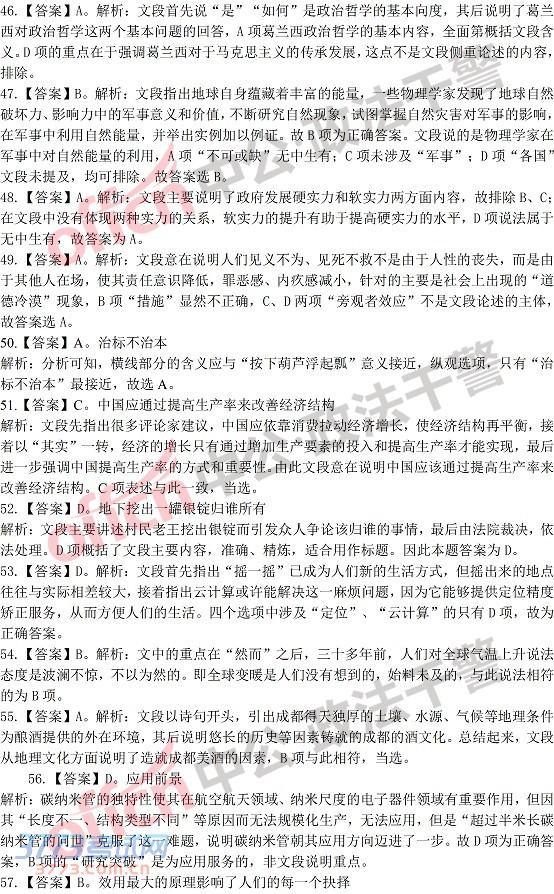 2014年陕西政法干警(专科)考试行测真题答案解析