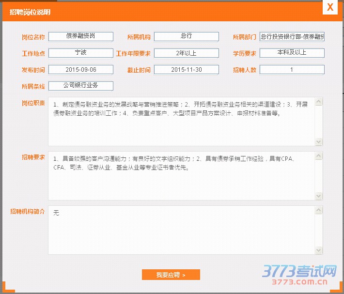 宁波银行总行2015年招聘债券融资岗启事