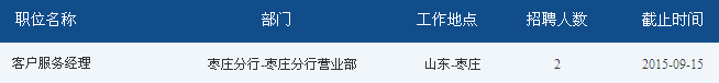 交通银行枣庄分行-枣庄分行营业部2015年招聘客户服务经理启事
