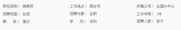 2、有一线销售经验,具有良好的沟通能力、客户意识以及抗压能力;